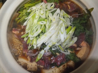 野鳥独特のクセがコクにかわる感じかな。さらに、ぱなけあ的持論だけど、猟期の初旬にこれを食べておけば インフルエンザにかかりにくくなるって寸法ヨ。ってのも、インフルエンザウィルスってのは、渡り鳥が持って きているなんて言われていて、まぁ、それを獲って、喰らっちゃぁいるんだけど、鴨すきとして、火を通し、 ウィルスを不活性化させて喰っているってわけよ。そもそも、予防で利用するワクチンも不活性化させたウィルス なわけで、まぁ、ワクチンを喰らってる事になるわけだ。平たく言えばワクチンの経口摂取だな。 ・・・科学的な根拠とかないんだけど、とは言え、今まで鴨すき喰らってた年にインフルエンザにかかった 事なかったし。そう考えると、鴨料理って薬膳になるのかもねー。 鴨スキ 3人前(鴨スキのみの場合) 材料:陸鴨1羽(マガモ、カルガモがお薦め。コガモなら2〜3羽)、カモガラ精肉時の物、食用油(大匙1)、 大根、ネギ、しらたき、焼き豆腐、白菜、セリや菊菜、えのき等を適量。 割り下100ml(本返しを利用なければ、醤油、みりん、酒、砂糖で適当に作る)、卵(適量) 道具:出汁取り用鍋、土鍋、フライパン @鴨肉は予めささみ、胸肉、手羽元、手羽先、腿肉、せせり身、細切れ、皮に精肉しておく。 A鍋でお湯を沸かし、煮立ったら、カモガラを入れて、30秒程茹で、こぼす。 B再度鍋にガラと、水を張り、ネギの青い部分を3〜5本いれ、弱火で煮だす。 C沸騰前から、アクが浮き出すので、火を最弱にして、アクを掬っていく。30分程度煮て出汁をとる。 D胸肉、腿肉は、薄くそぎ切りしておく。 E大根を大きめに笹掻きする。 Fフライパンに食用油を入れ、手羽元、手羽先、腿肉、せせり身、細切れ、皮を炒める。 Gいい感じに炒めたら、笹掻きした大根を入れ更に炒める。 H油がまわり、ある程度炒めたら、すべてを土鍋に移し、割り下25ml、鴨出汁50mlを入れて、 蓋をして煮る。 (この時、下茹でしたシラタキも入れておくとよい) I鍋に入れる材料を切りそろえ、鍋に入れられる状態にしておく。 J大根に味がしみてきていたら、残りの割り下と、鴨出汁200mlを入れ、一端沸騰させる。 Kネギ、香菜以外を入れて火を通す。 L香菜を入れ、鴨肉と、ネギを入れて、蓋をして、さっと熱を通せば完成。 鴨肉はほんのり赤みが残っているくらいが美味しくたべられる。取り皿に卵を割り、卵をつけながら 具を食べる。肉自体も美味いけど、大根や、焼き豆腐にも鴨のコクが染み込んでいて、相当美味いよ。 ガツガツ喰らいつくす。 事前に蕎麦を打っておいて、食べ終わると同時に蕎麦を茹で上げて、残りの汁を蕎麦つゆにすると、 本物の、鴨南つけ蕎麦になる。 これは、喰った人にしかわからないかもしれないが、感動すること間違いなしの美味さとなる。 今年の年越しは、鴨南つけ蕎麦でいってみるか。。。 |
